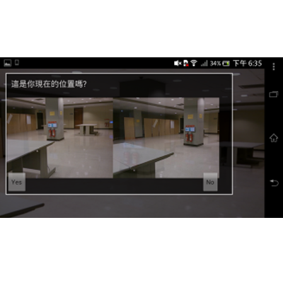 使用者使用手機在空間內打開APP,拍攝一張環境照片,系統回傳現在位置。